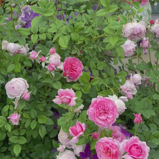 A beloved climbing English rose with rounded blooms of utmost perfection. Chuffed with perfume and 200 petals, this lilac-pink rose carries a beautiful myrrh fragrance. The buds are dark pink and rounded, unfurling the most spectacular blooms. Bred in 2002.
