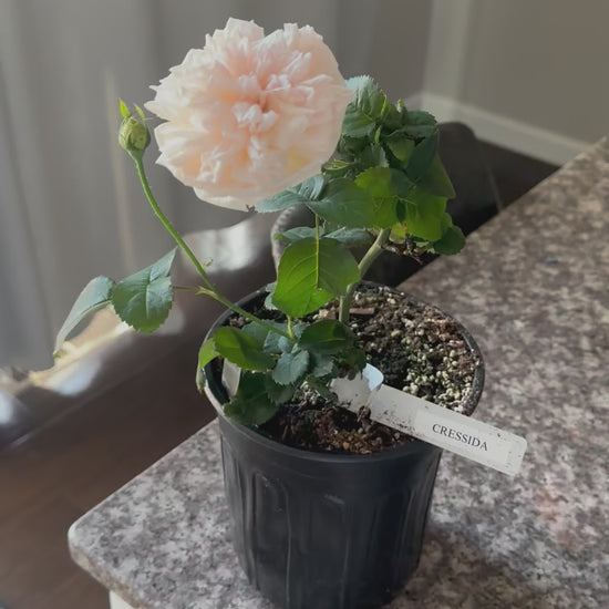 Ships in a 1 gallon pot with well established roots. Own root. All our roses are within their first year. Please consider this when purchasing. If you live in a cold zone, spring planting is best and fall planting is not advised. This advice is based on our experience here in zone 5b.