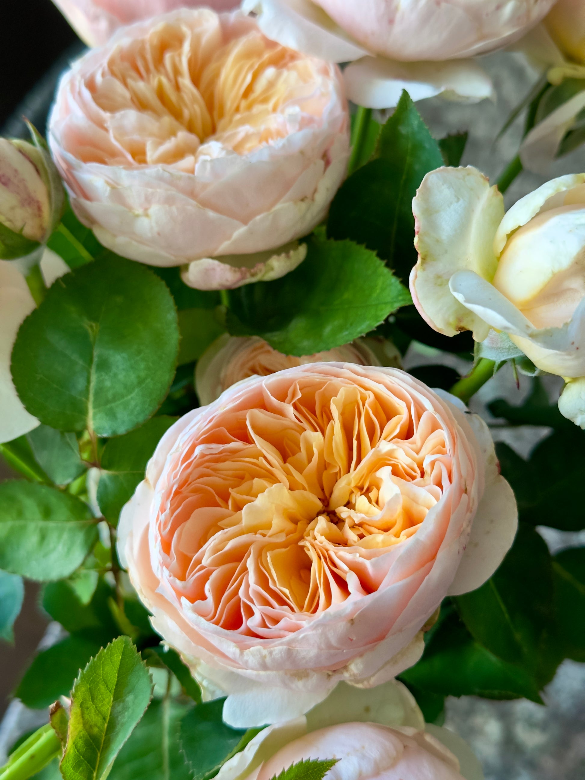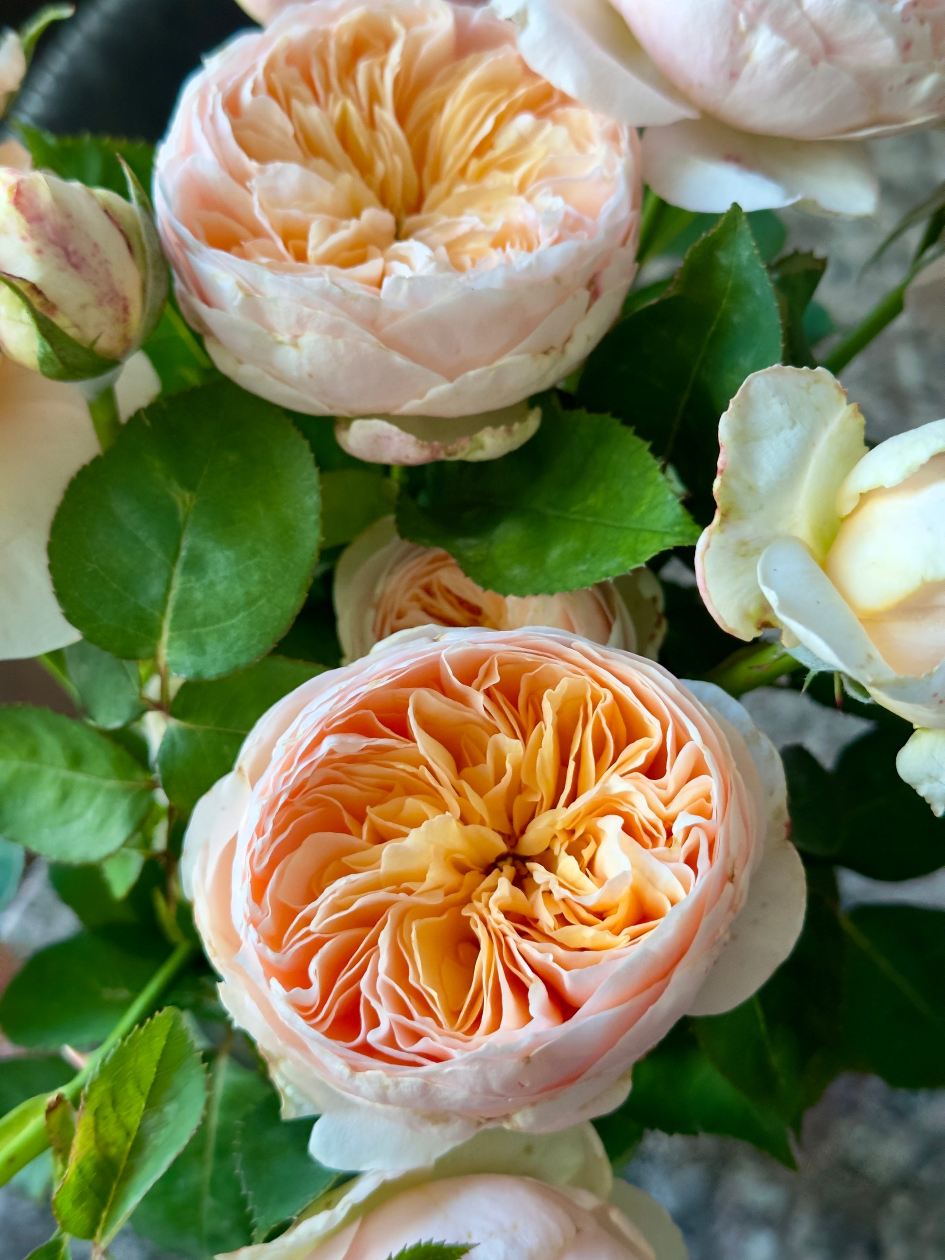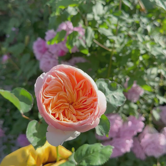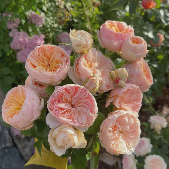 The all time favorite and beloved English cut rose. Absolutely stunning blooms of peach and apricot. A mild, tea fragrance can be detected at times. Blooms in clusters or singly and lasts a long time on the plant. Bred in 1999.