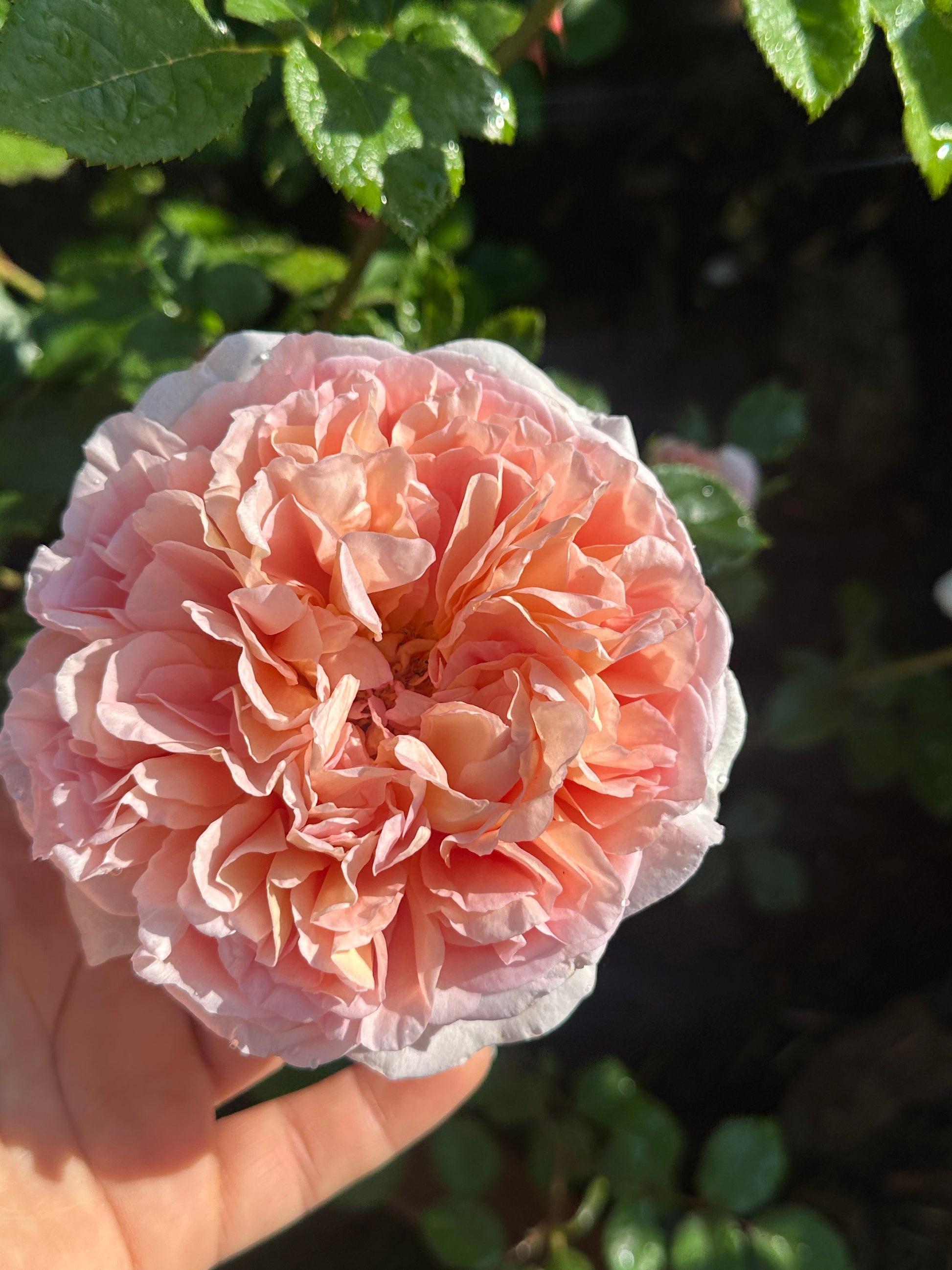 An American, English style shrub rose with 4" cupped blooms of a luminous peachy-orange color are borne in clusters of three and five and occasionally singly. Each bloom is packed with 60 to 80 petals and carries a strong fragrance of old rose and citrus. Holds its color well in heat, very disease resistant, and reliable repeat bloom. This rose is a descendant of Abraham Darby. Bred in 2004.