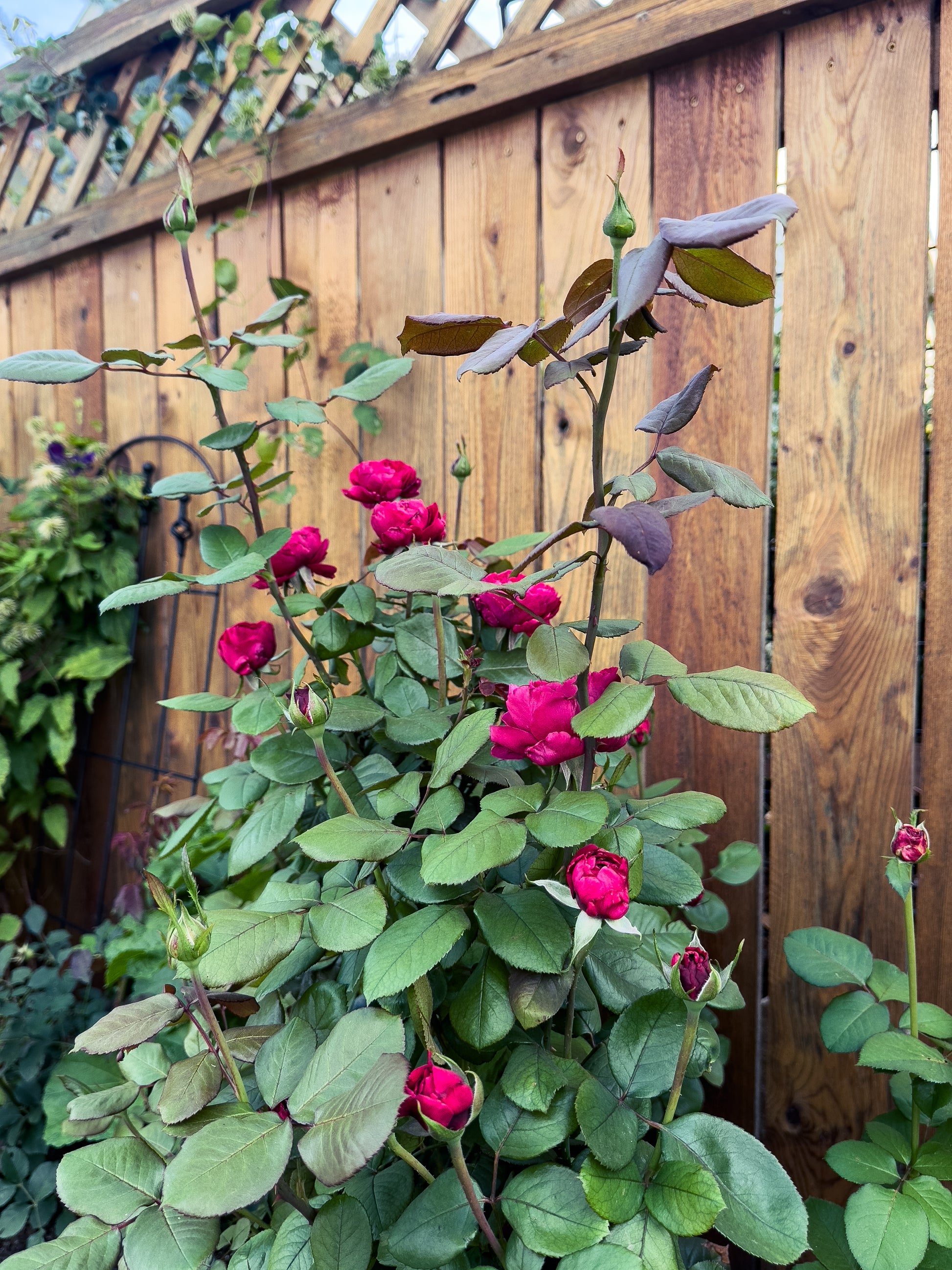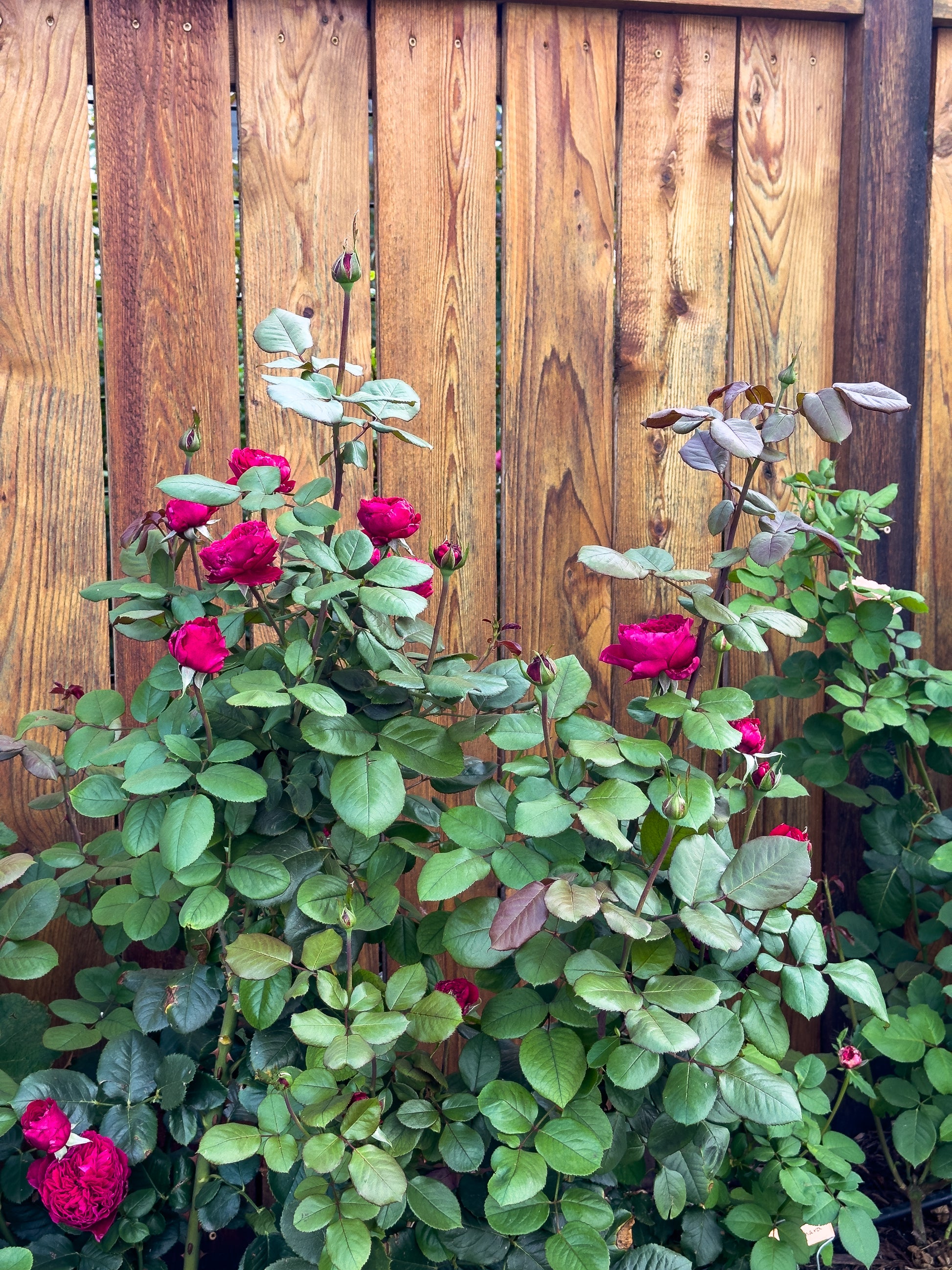 This rose is a gem in our Colorado garden and is quite possibly my favorite red rose. The fragrance is one of our most favorite and the foliage is absolutely beautiful. We have it growing in morning sun only, which I think helps keep the blooms from scorching on the hottest days. This past spring we planted one in full sun to see how it holds up there. These photos were taken from our garden with an iPhone.